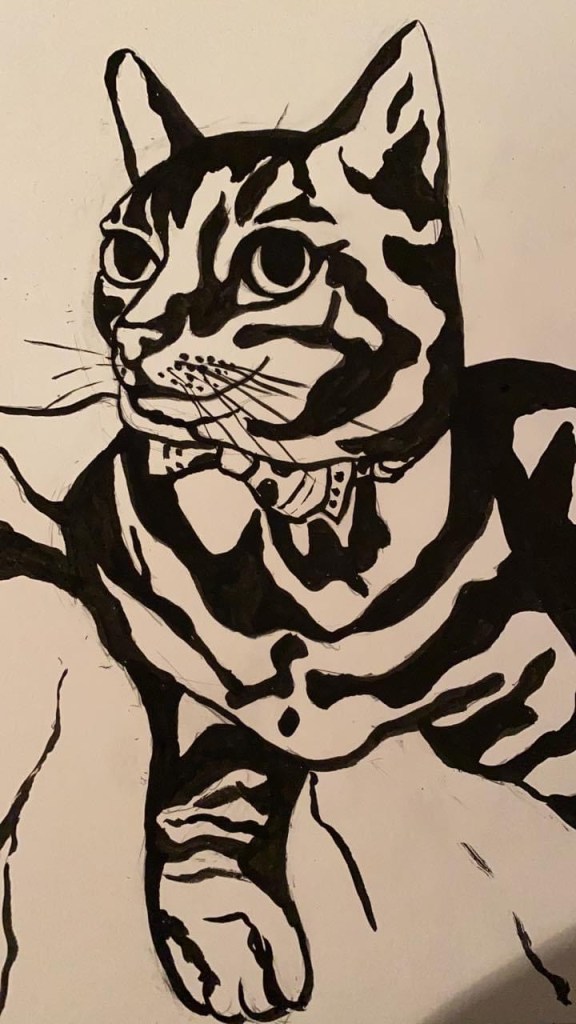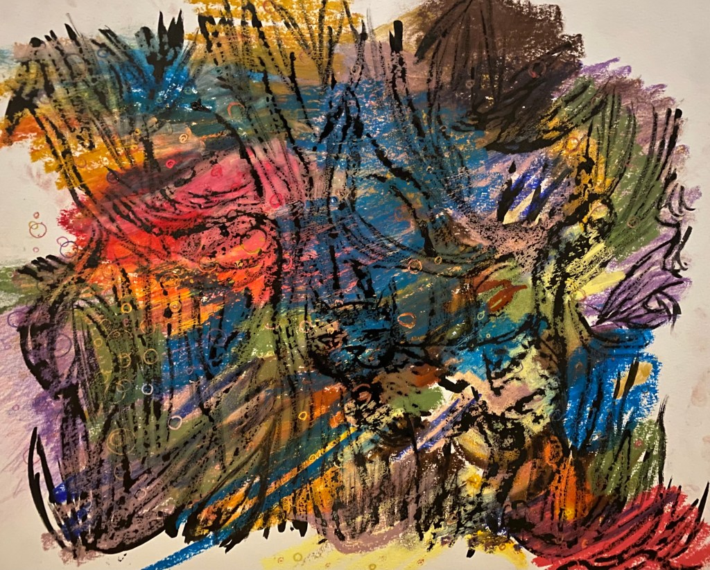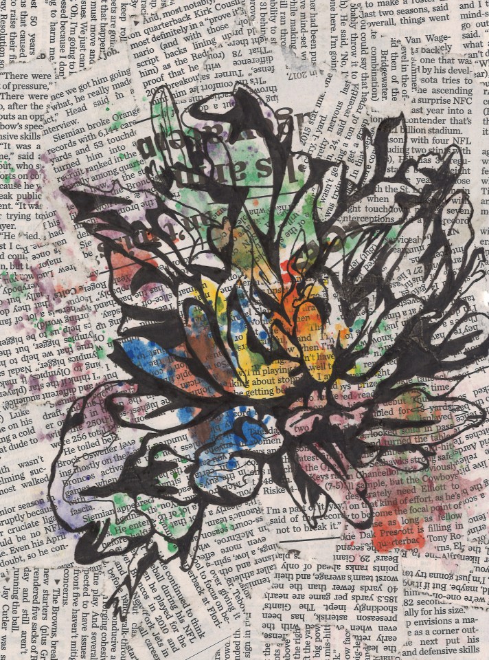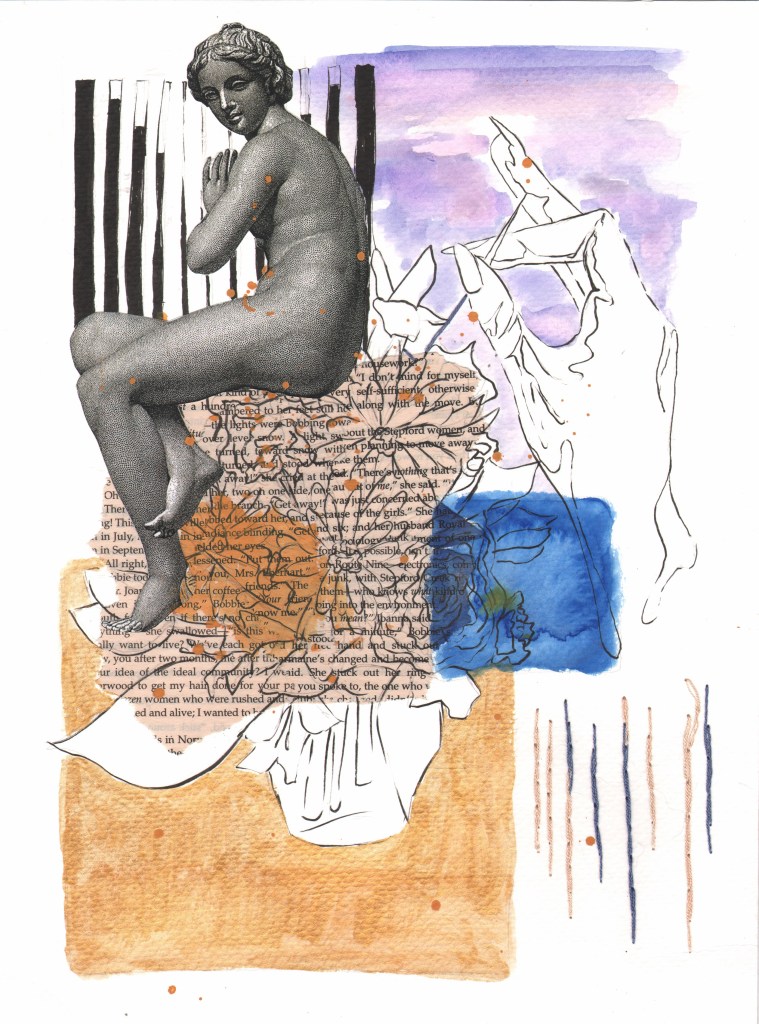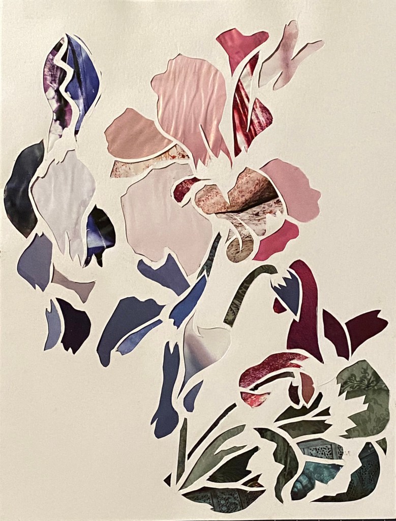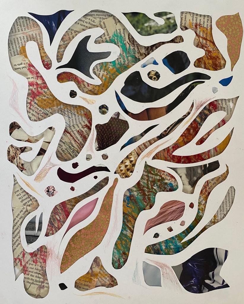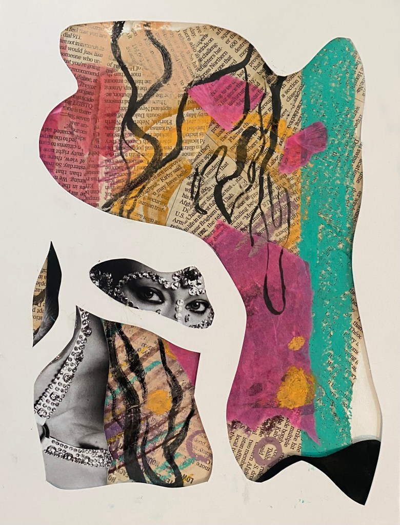 Cynthia Able is an avid collector of vibrant packaging and advertising, which she repurposes into free-moving, brightly colored mixed media collages. Her preferred method involves carving free-form abstract shapes from Bristol paper with a box cutter, selecting eye-catching textures and vivid patterns from Vogue or other fashion magazines, and deconstructing books and editorials (quite literally) in newspapers. Inspired by Gustav Klimt, Cynthia’s work explores femininity and sexuality, but instead of creating for a male gaze, she hopes to direct her art towards women.